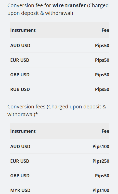 - Frais de conversion : 50 pips ou 0,005